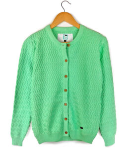 from finely knitted organic cottonCardigan Penny vibrant mint with zig-zag pattern