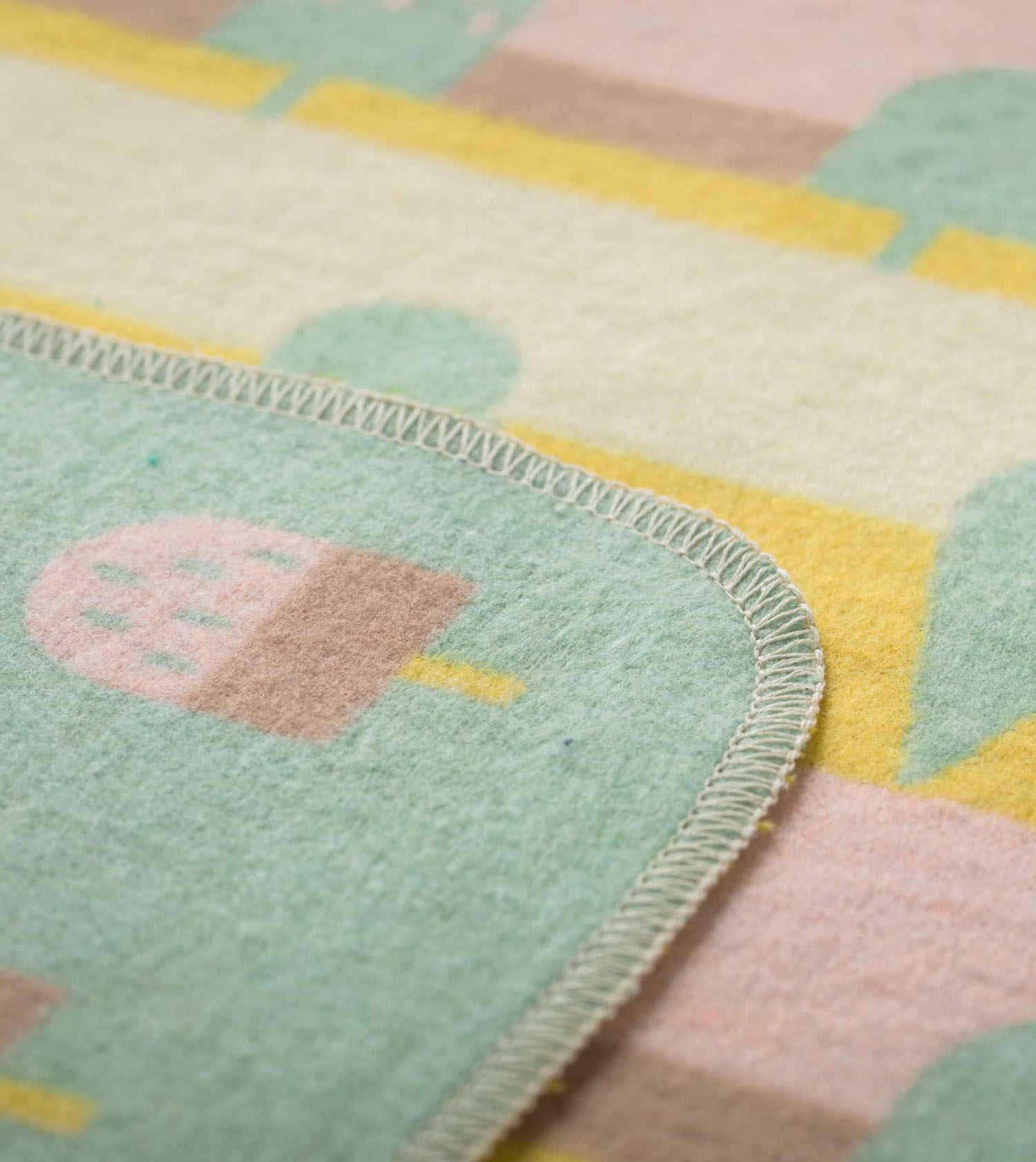 Equipping babies with the highest quality right from the start works particularly well with the cuddly baby blanket. The flannel blanket is made of 100% recycled cotton. The soft, breathable blanket is great for any season. The playful design makes the blanket a real eye-catcher.