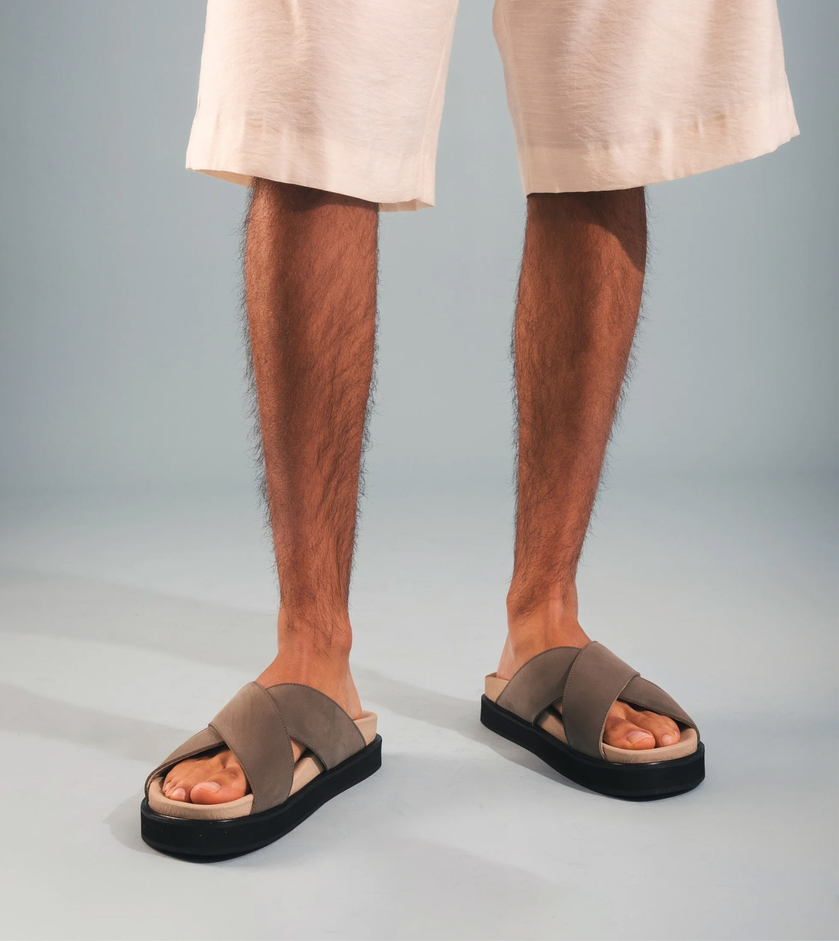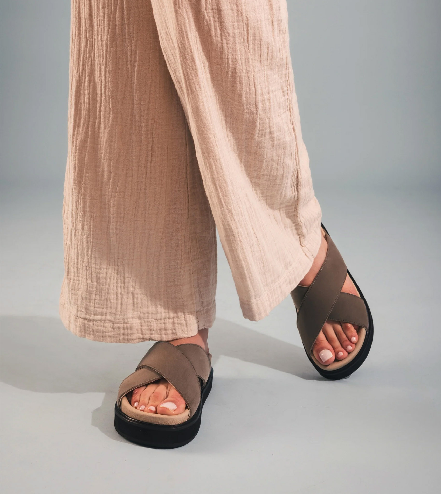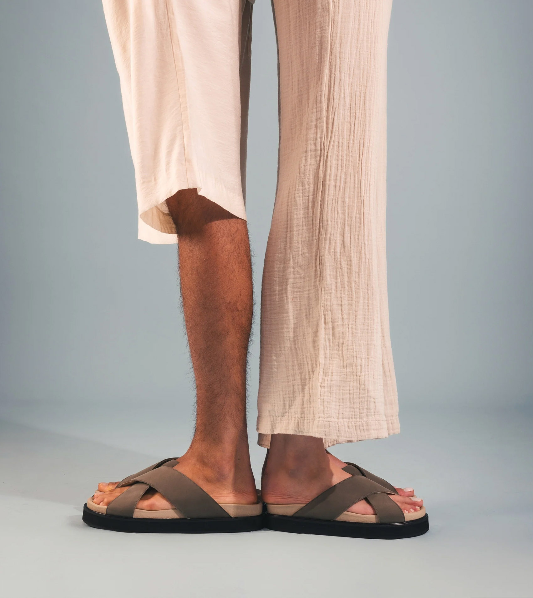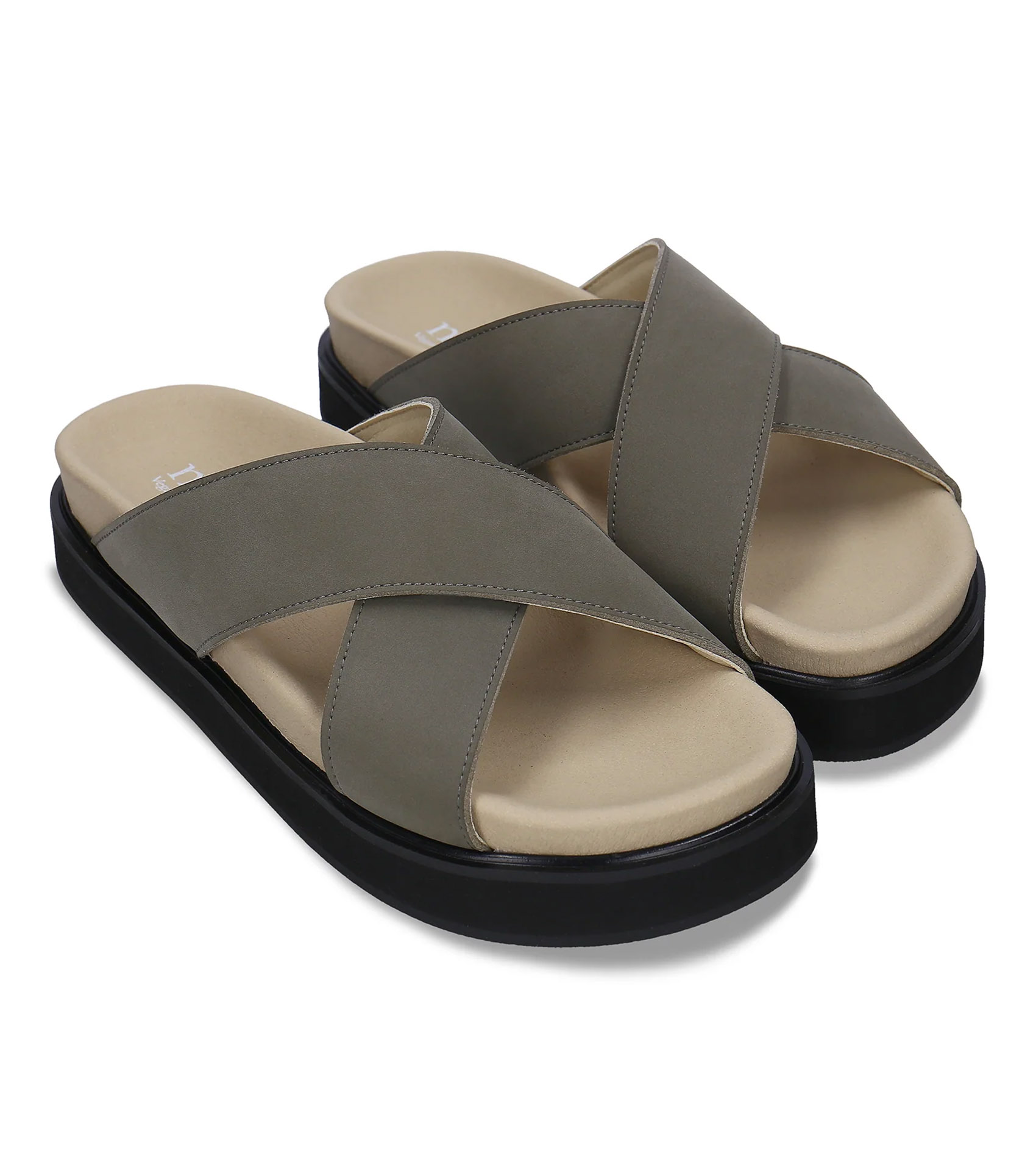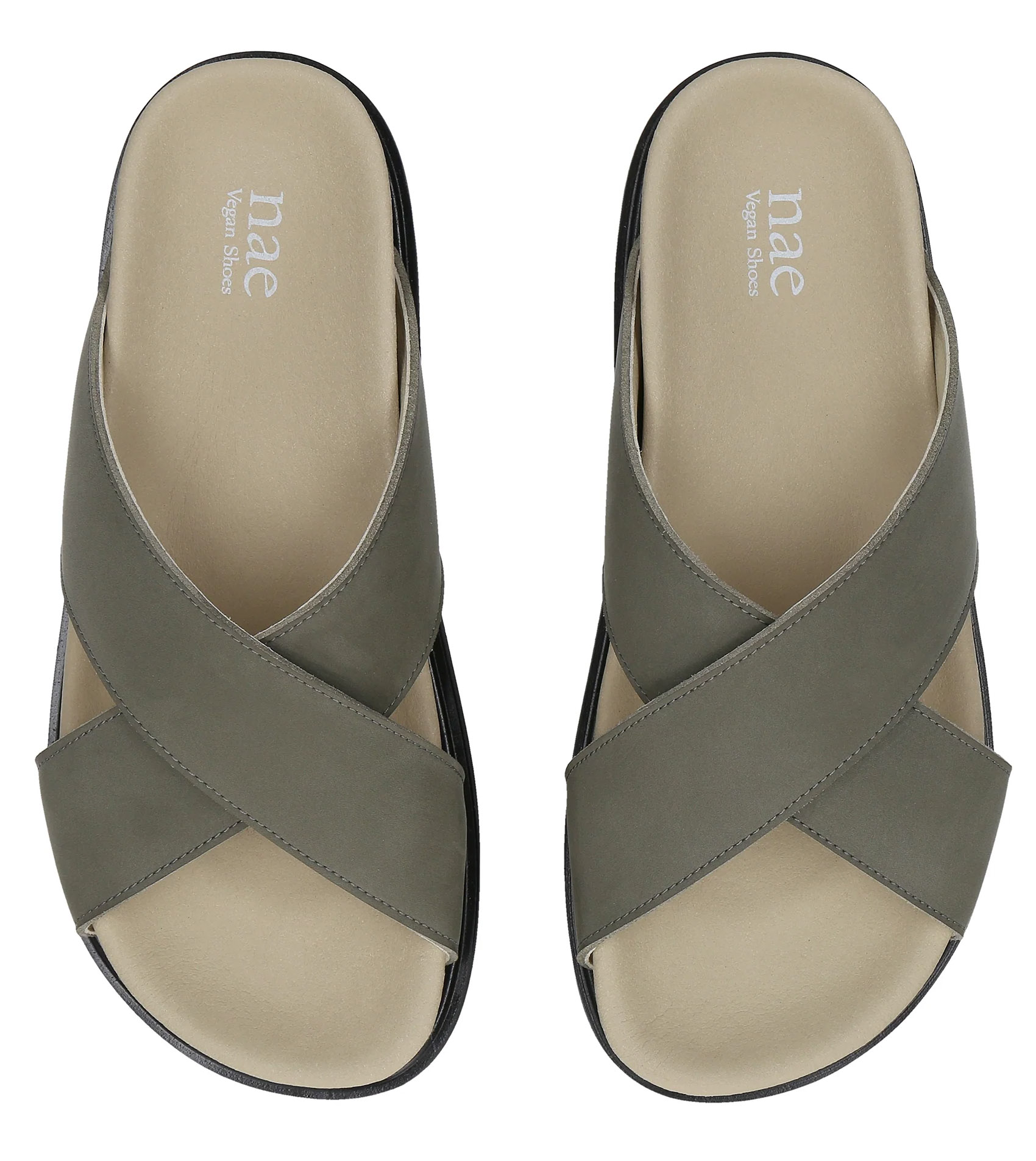 The vegan Davu sandals are handcrafted in Portugal from eco-friendly microfibers. Featuring a striking, crossed design at the forefoot, a 2 cm platform sole, and a 1 cm outsole, they offer modern style and exceptional comfort.