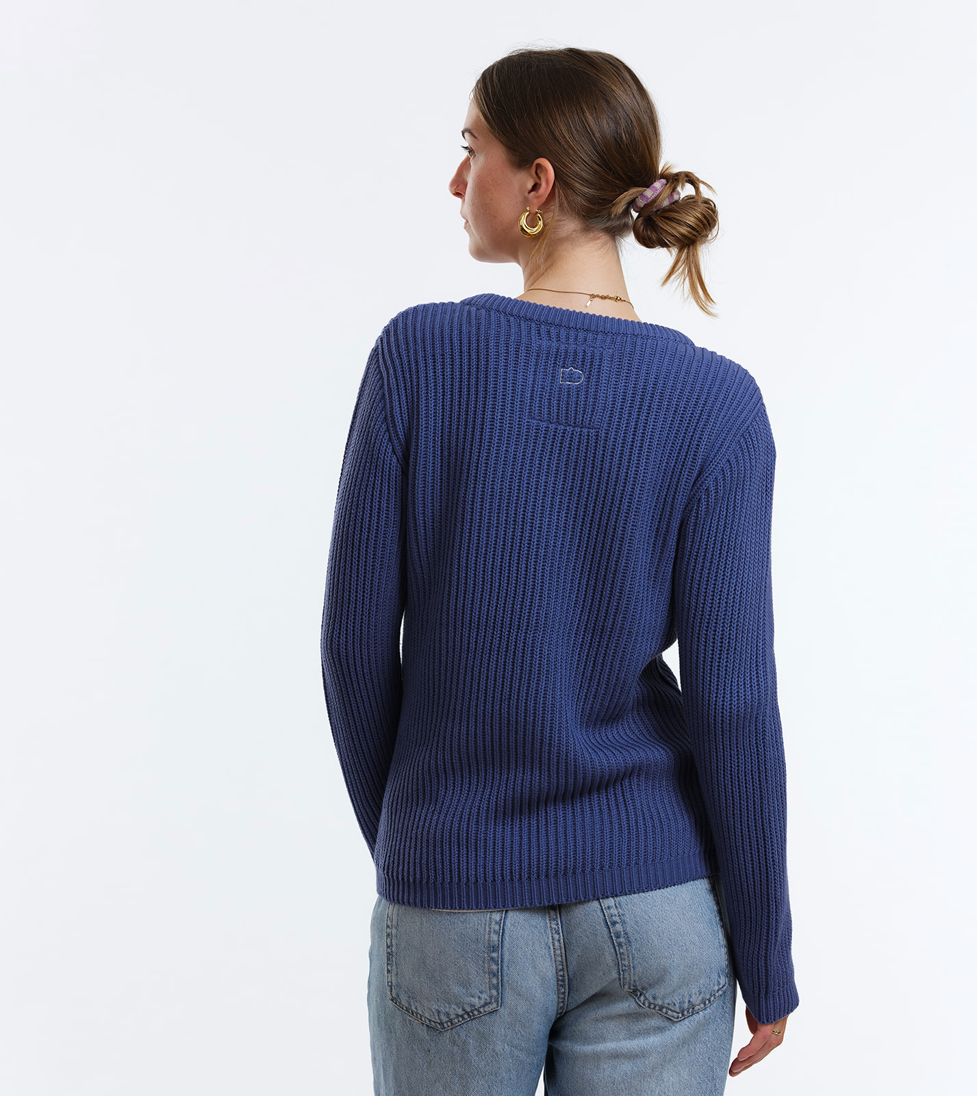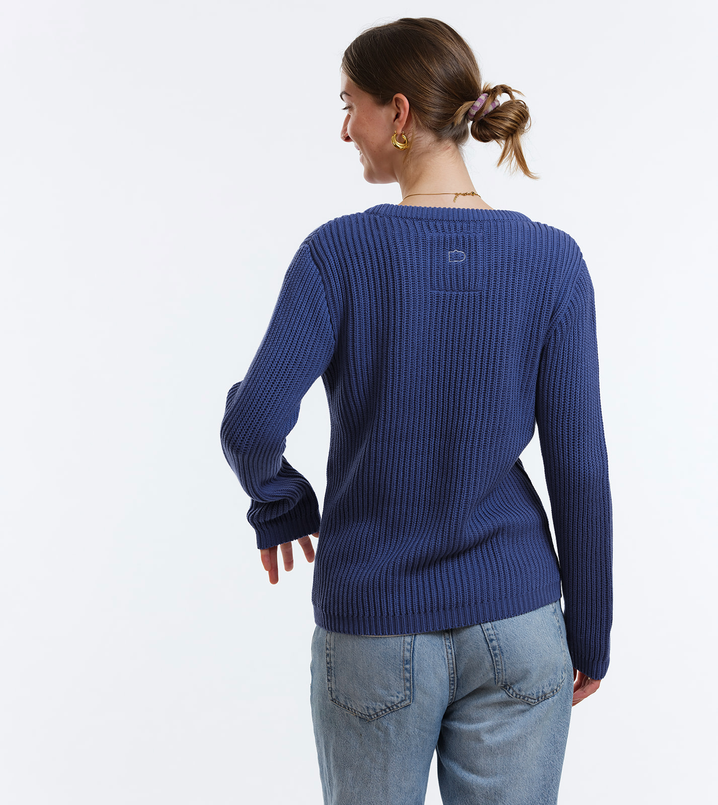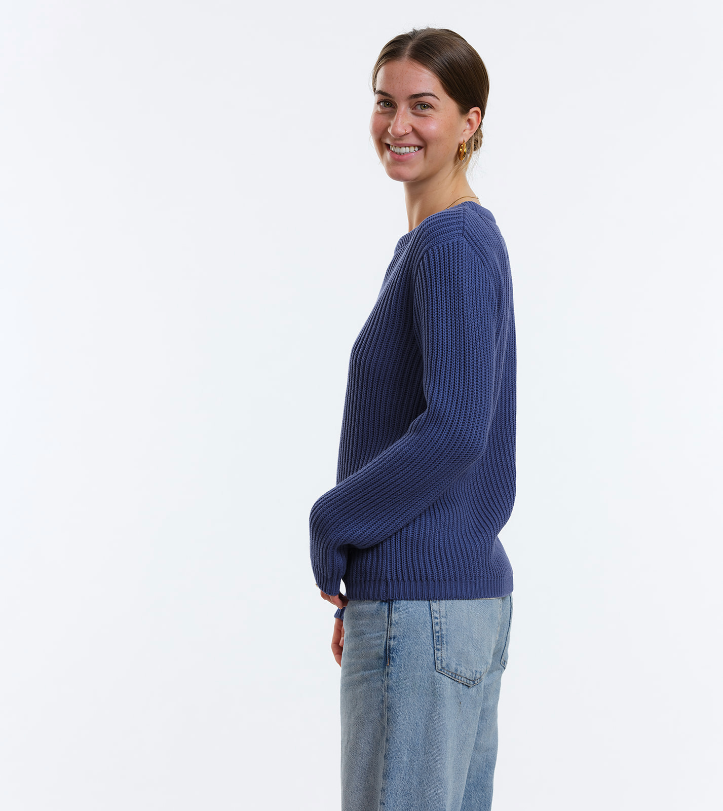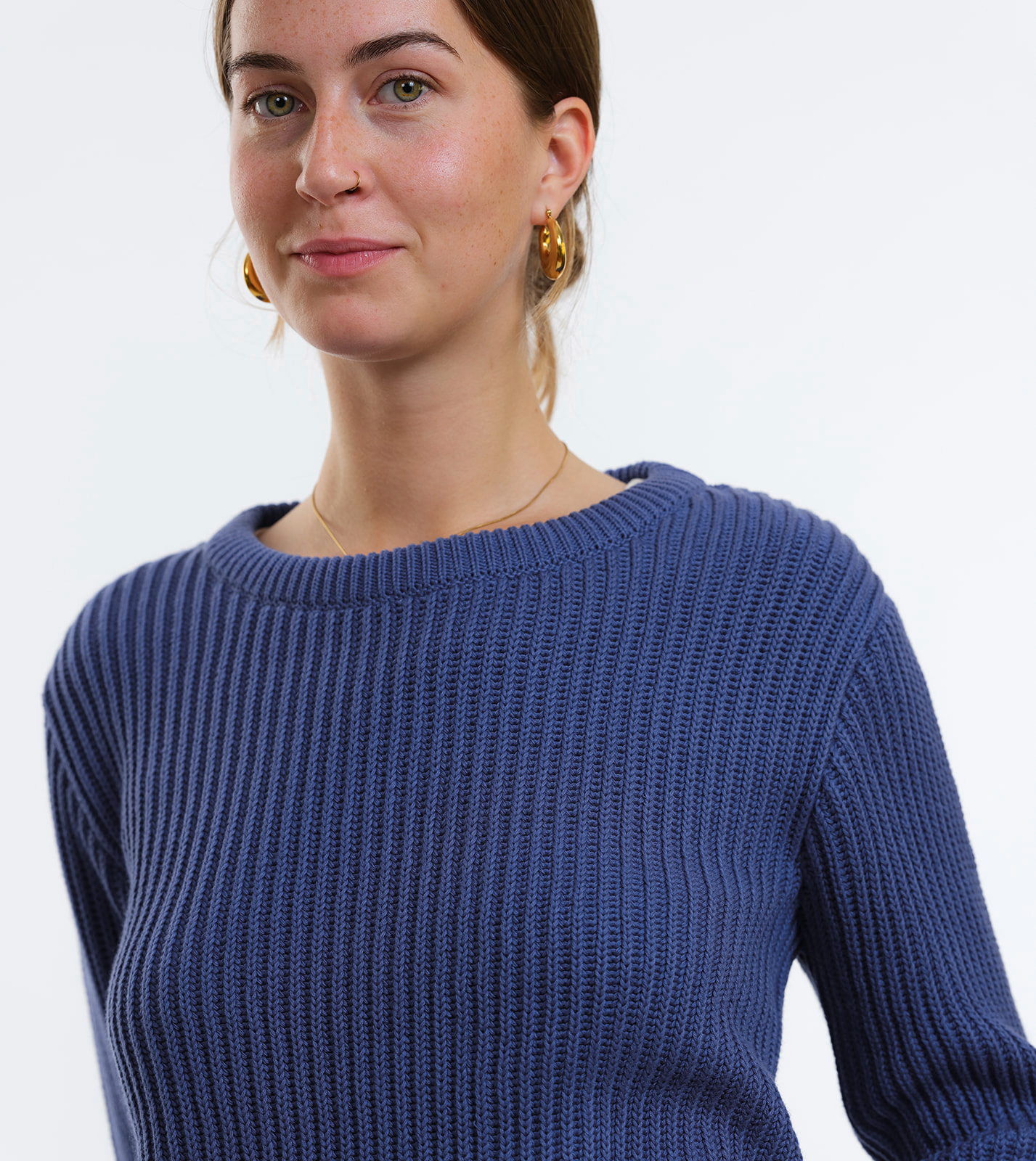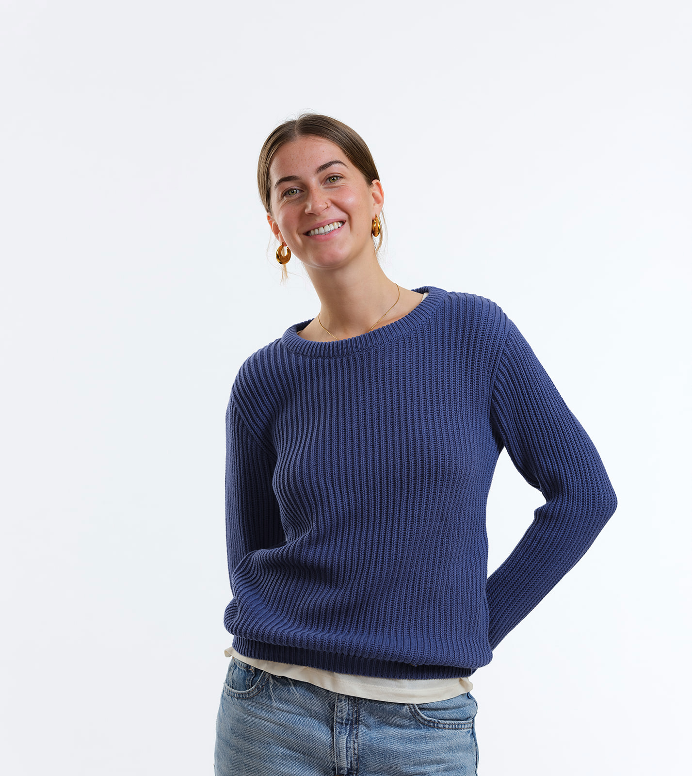 Clean lines. With its ribbed texture, pleasant weight, and relaxed cut, the Lamona knit sweater is a must-have. The vertical structure and fine workmanship add volume without adding bulk. The pure organic cotton is particularly comfortable to wear, soft yet retains its shape.