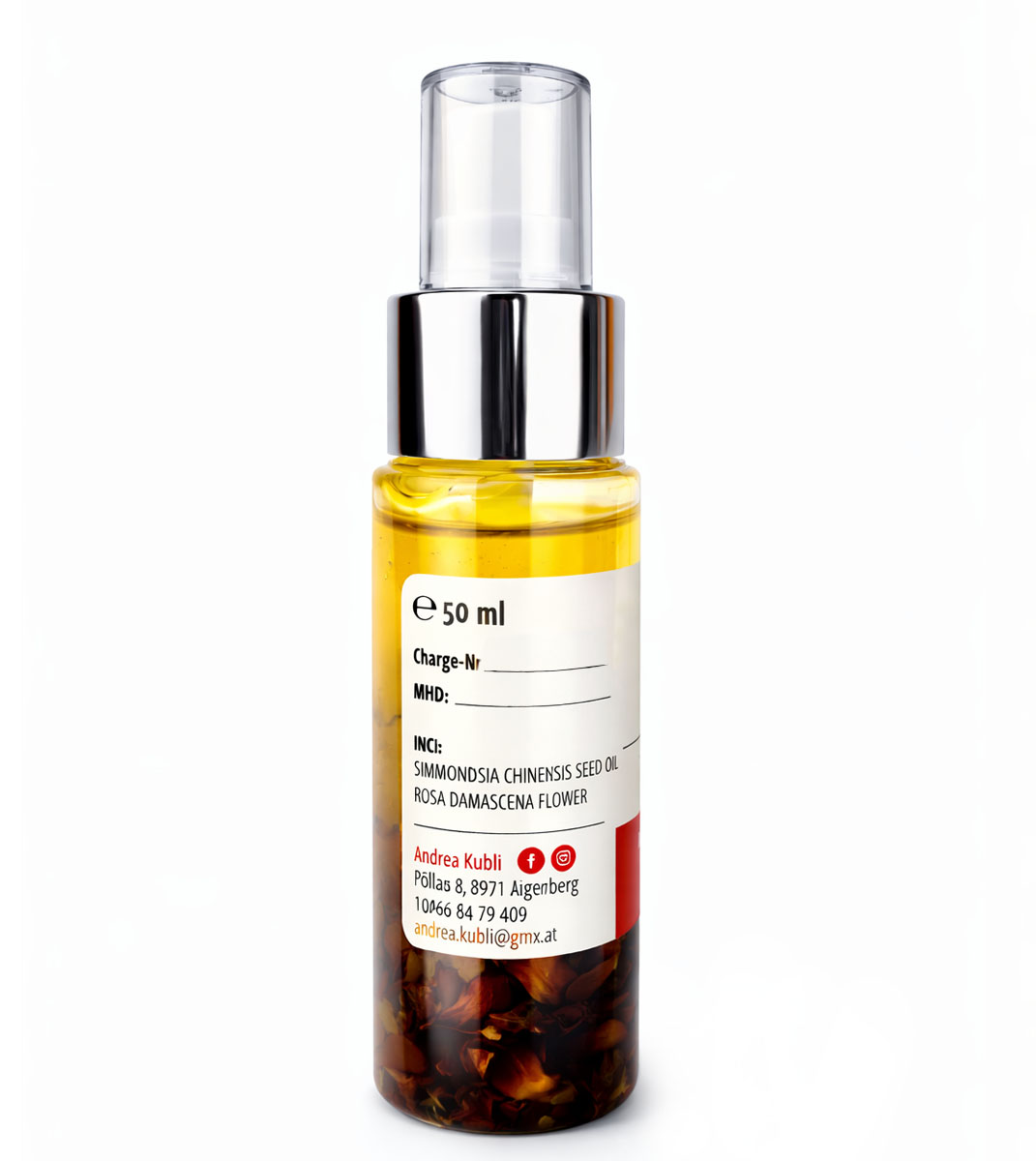 – with real rose petals and high-quality jojoba oil