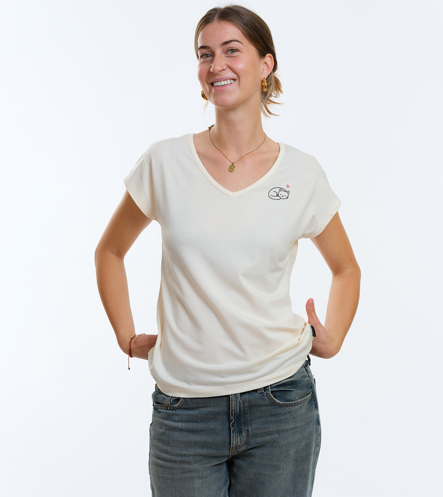 Shirt Ellis with little kitten, ivory