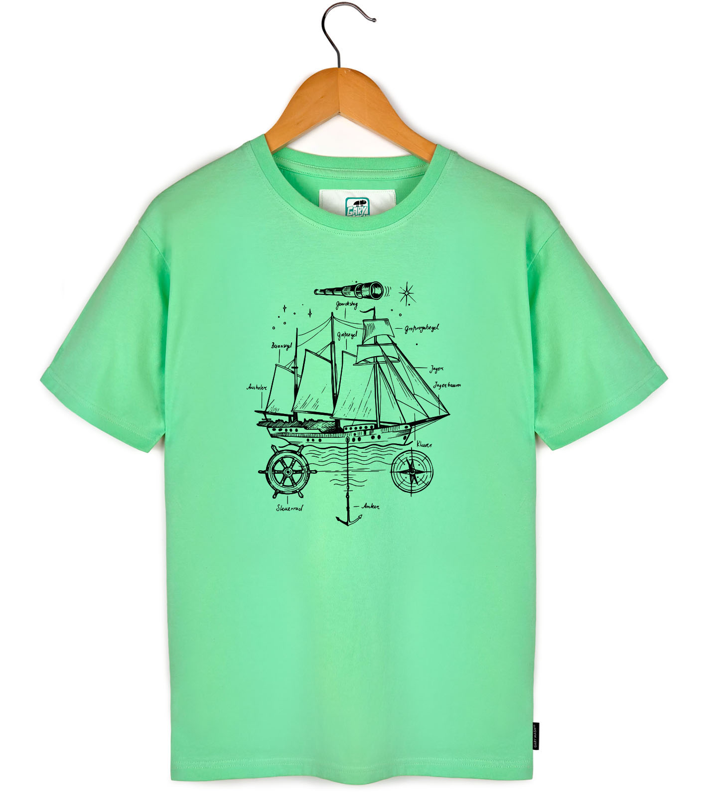 The T-shirt Sailor is super comfortable and soft on the skin. The cut of the men’s shirt is classic. It is suitable for all your activities and can be combined with everything. Eye-catcher is the large, black sailing ship drawing on the chest.
