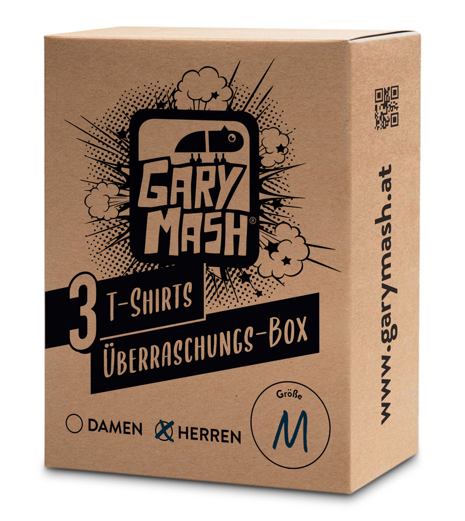 Did you love surprise bags as much as we did as a small child? Then you should definitely grab our surprise box – filled with 3 men‘s T-shirts.