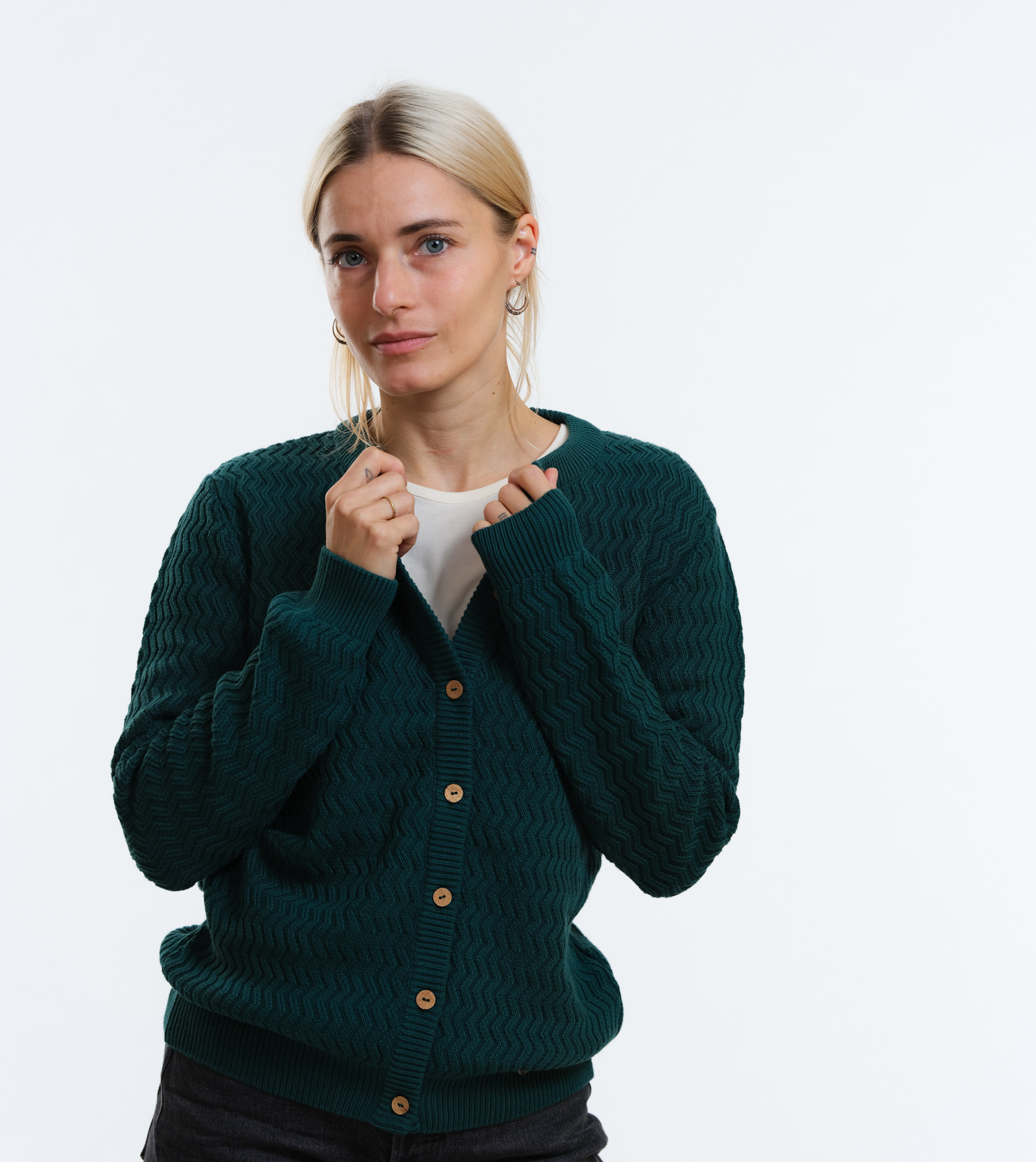 Cardigan Penny dunkelgrün mit feinem zig-zag Muster