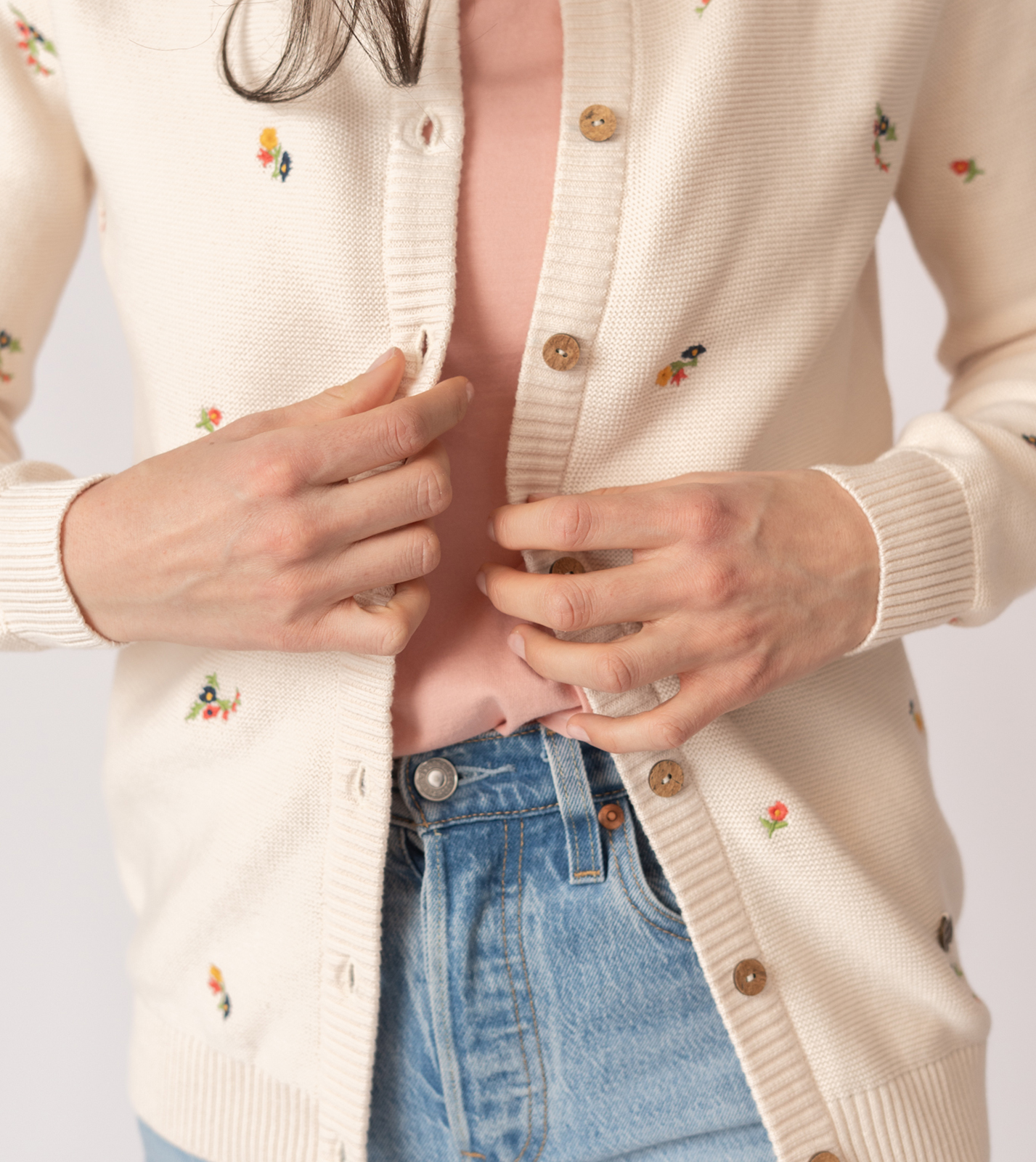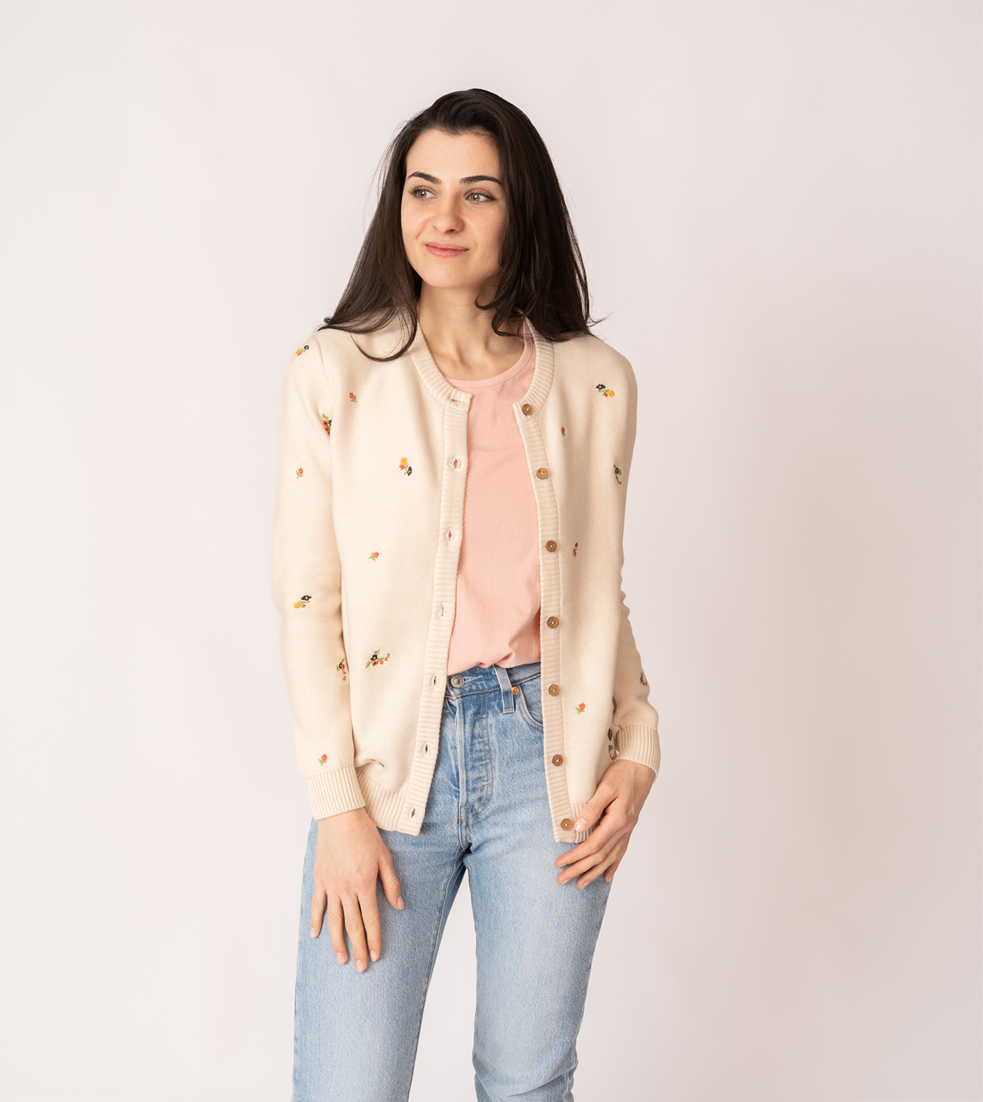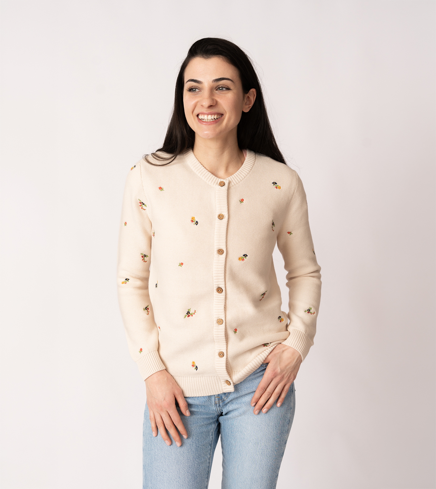 So frisch und leicht wie ein Eis am perfekten Sommertag – Cardigan Penny in zartem Ivory mit floraler Stickerei. Ein Style, den man einfach lieben muss.