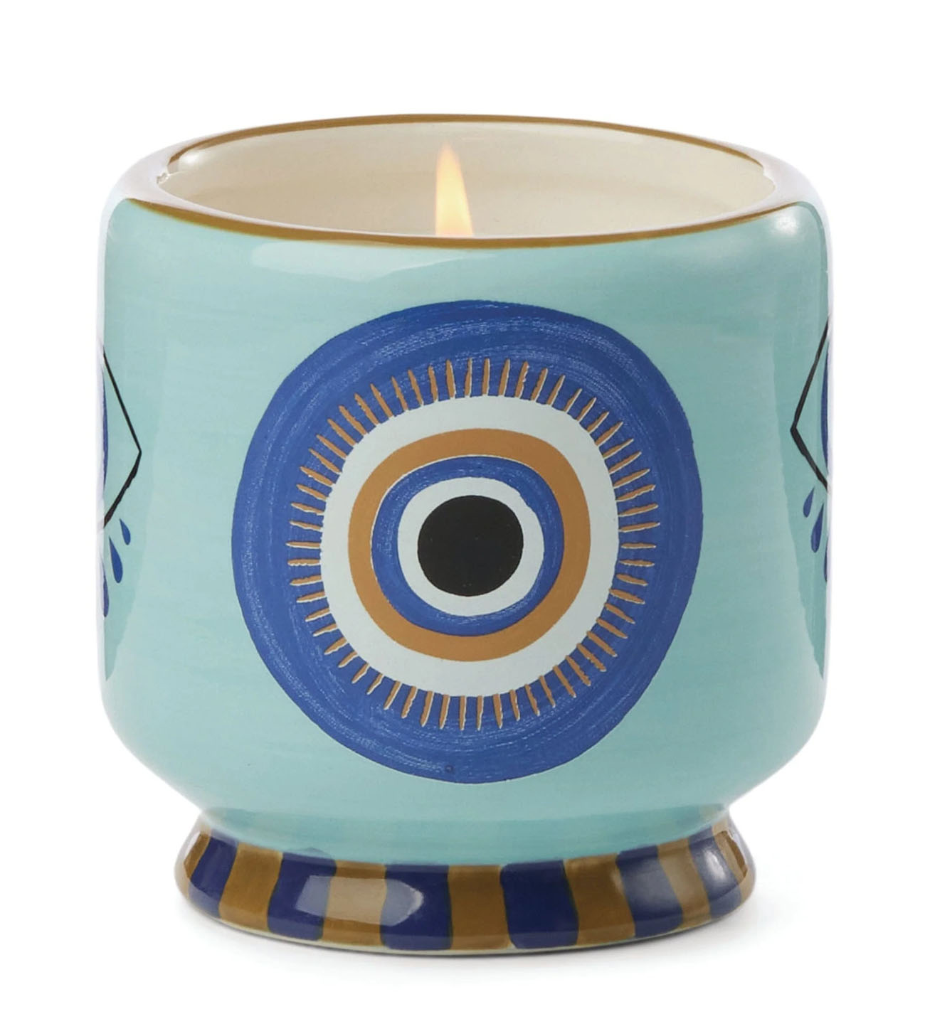 Jedes Keramikgefäß ist in den leuchtenden Farben und einladenden Mustern des Südens gehalten und sorgfältig mit ausdrucksstarken Pinselstrichen handbemalt, was für ein handwerkliches Flair sorgt. Wenn das Wachs aufgebraucht ist, verwandle das Gefäß einfach in einen einzigartigen kleinen Übertopf oder eine Vase und verleihe deiner nächsten Party im Freien Farbe und Verspieltheit!