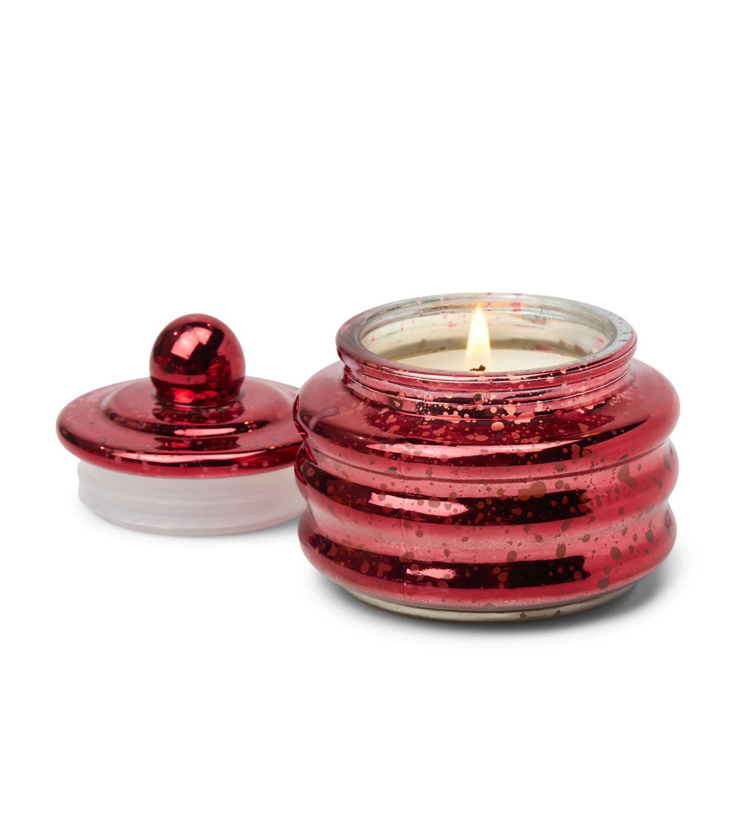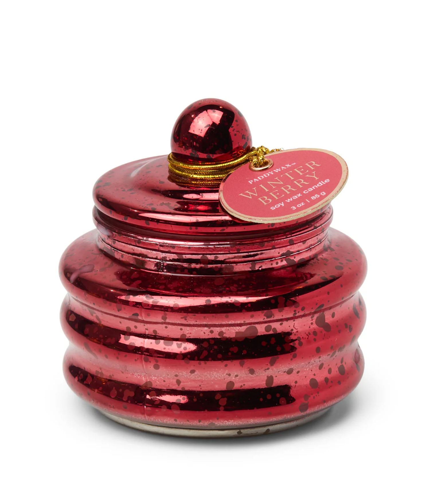 Die kleine Beam-Kerze schafft eine warme und gemütliche Weihnachtsatmosphäre. Das Licht flackert und funkelt durch das Quecksilberglas, während der Duft „Winter Berry“ den Raum füllt.