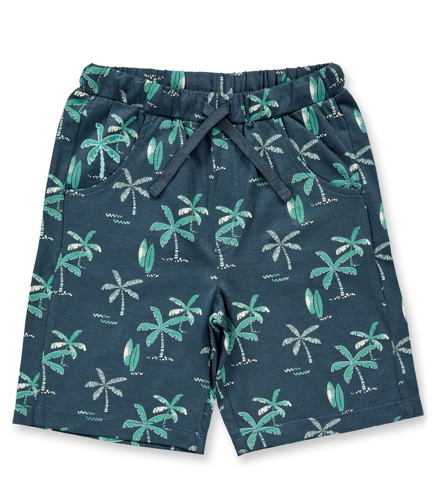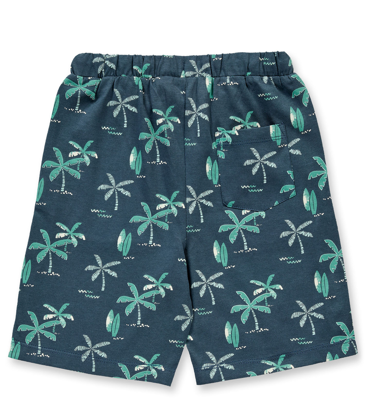 Die Shorts mit Palmen-Druck auf dunkelpetrolfarbenem Hintergrund bringt Urlaubsstimmung in die Garderobe. Eingriffstaschen vorne und eine Hosentasche hinten sind schöne Details. Der elastische Taillenbund sitzt bequem und die normale Weite schenkt deinem Kind ganz viel Bewegungsfreiheit beim Toben.