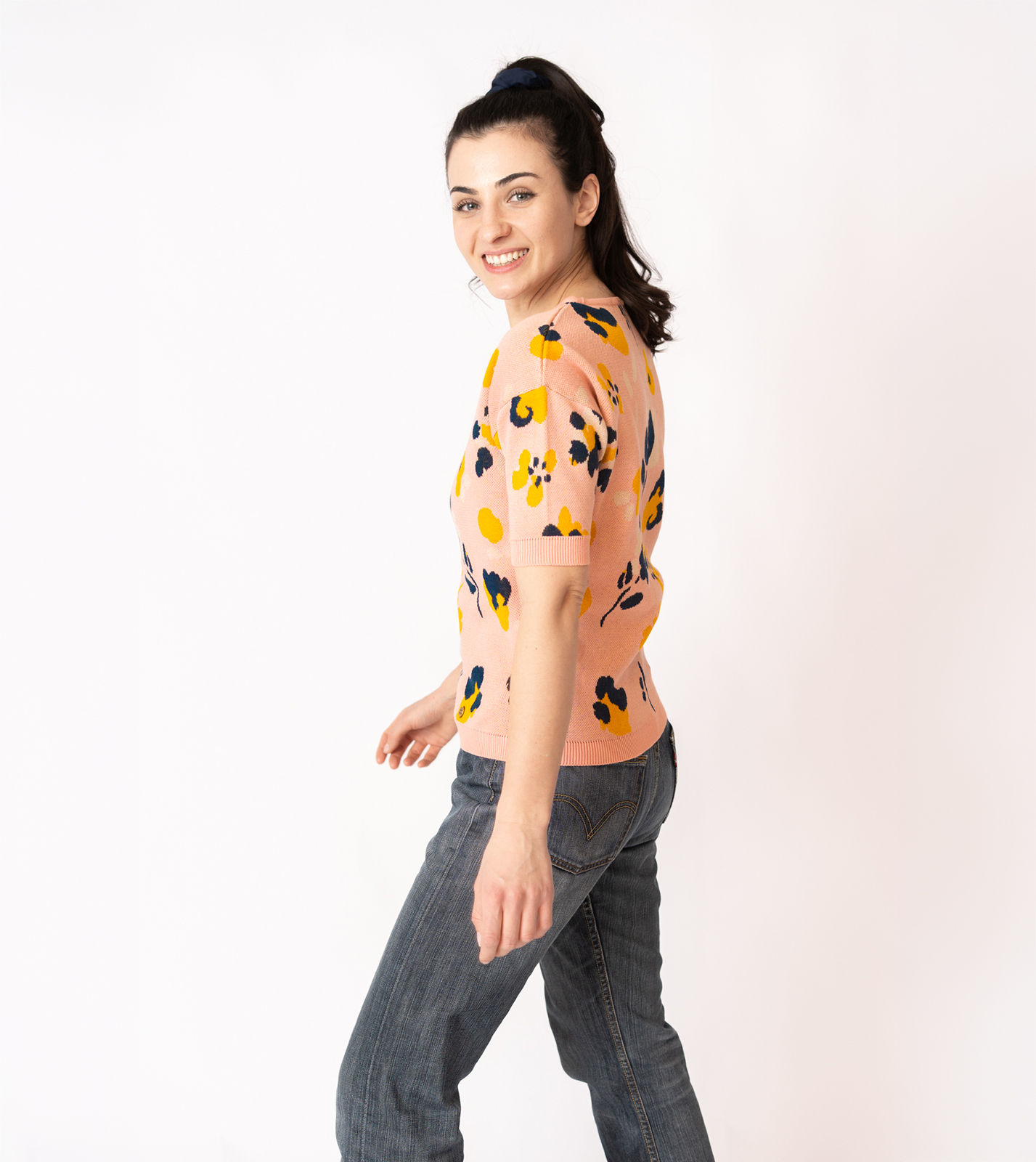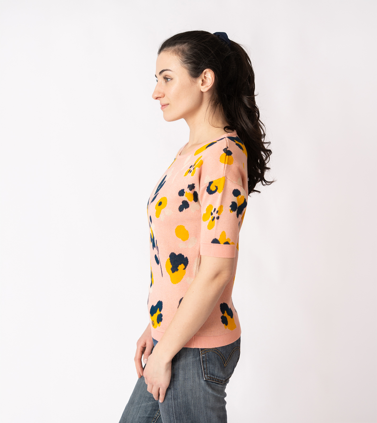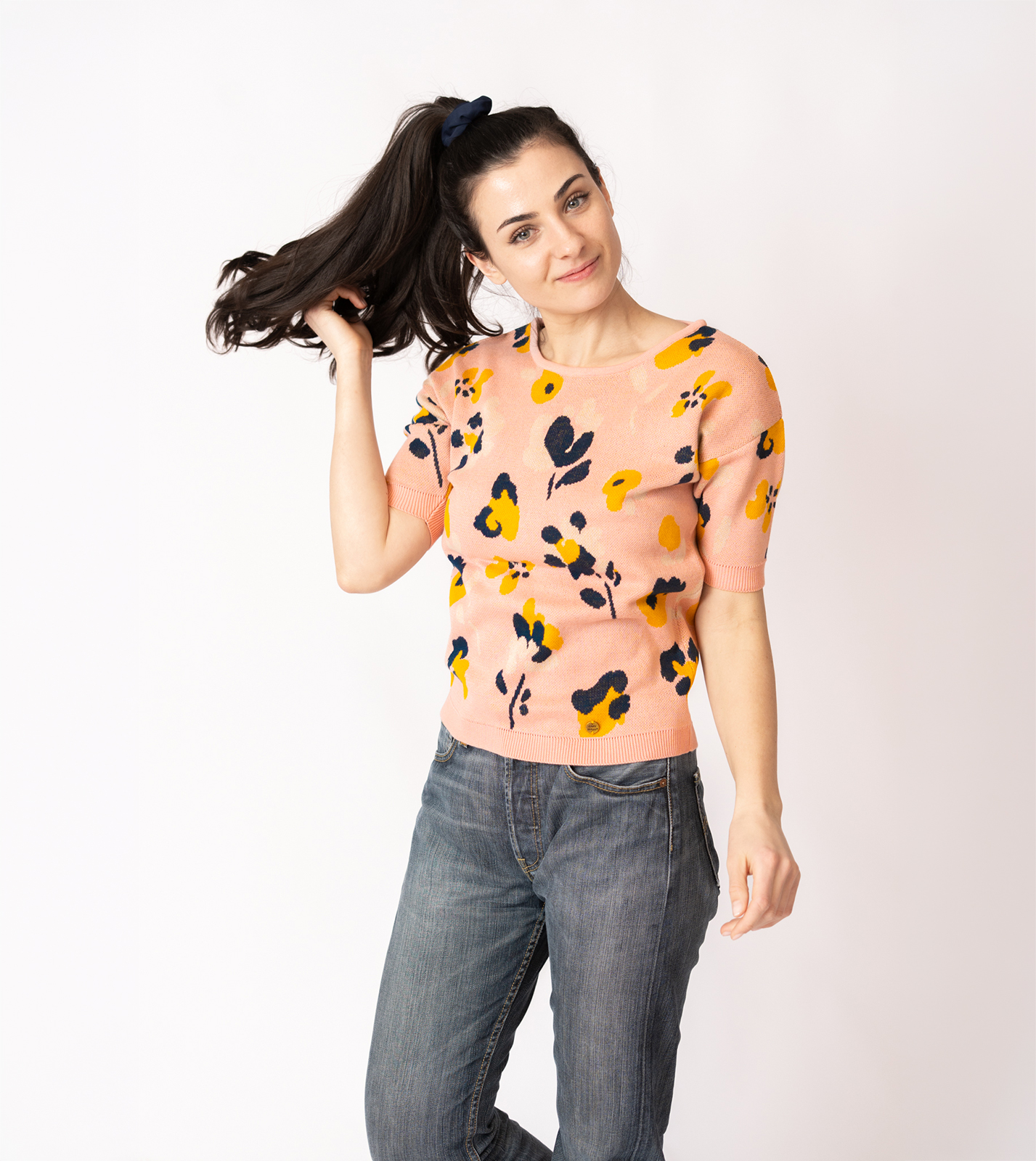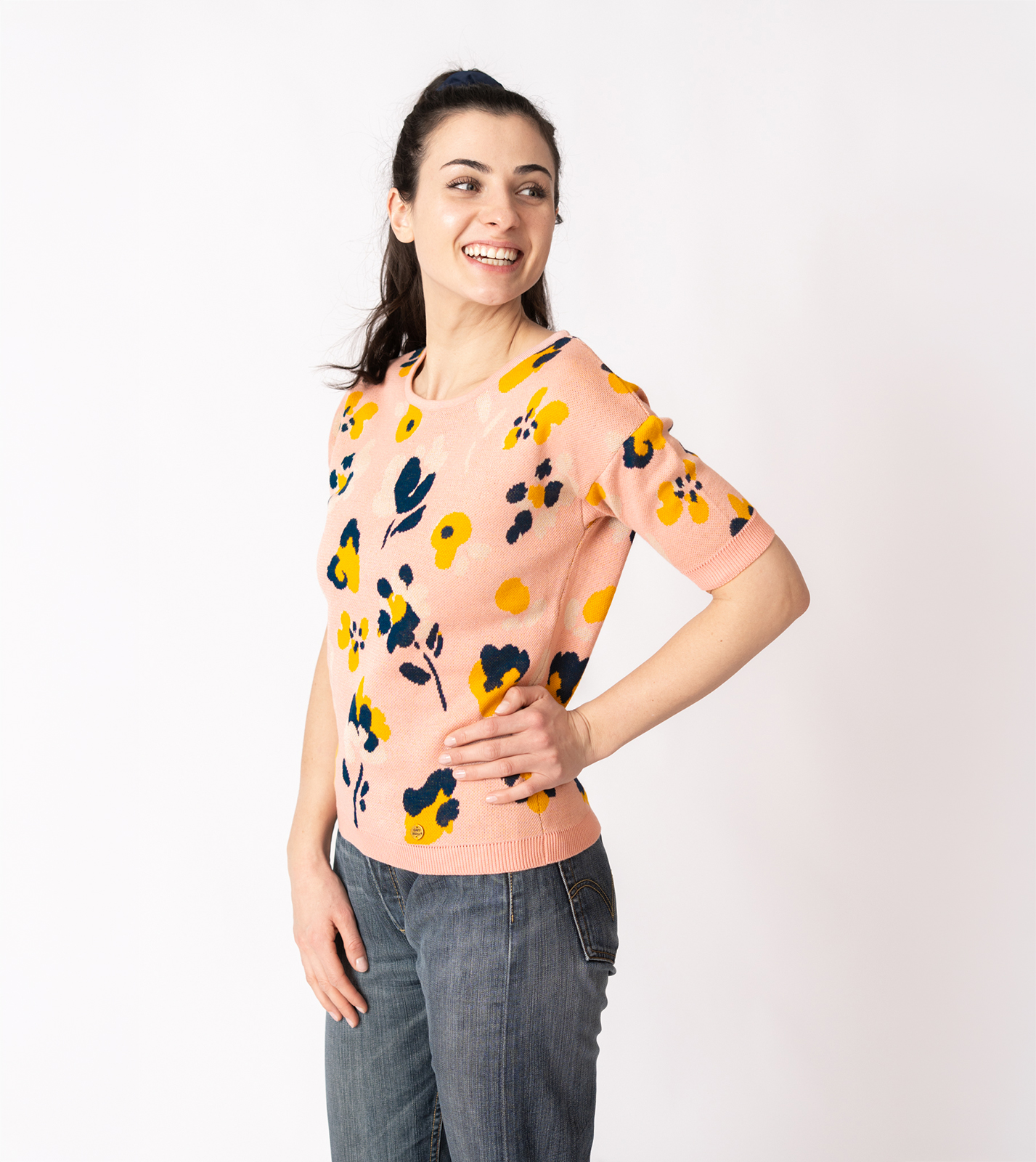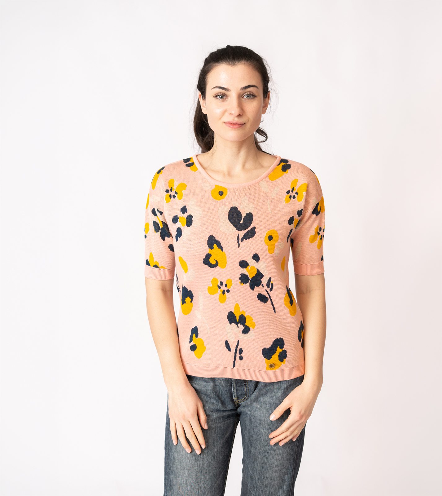 Kurzarmpulli Vina mit Blumen in Rosa