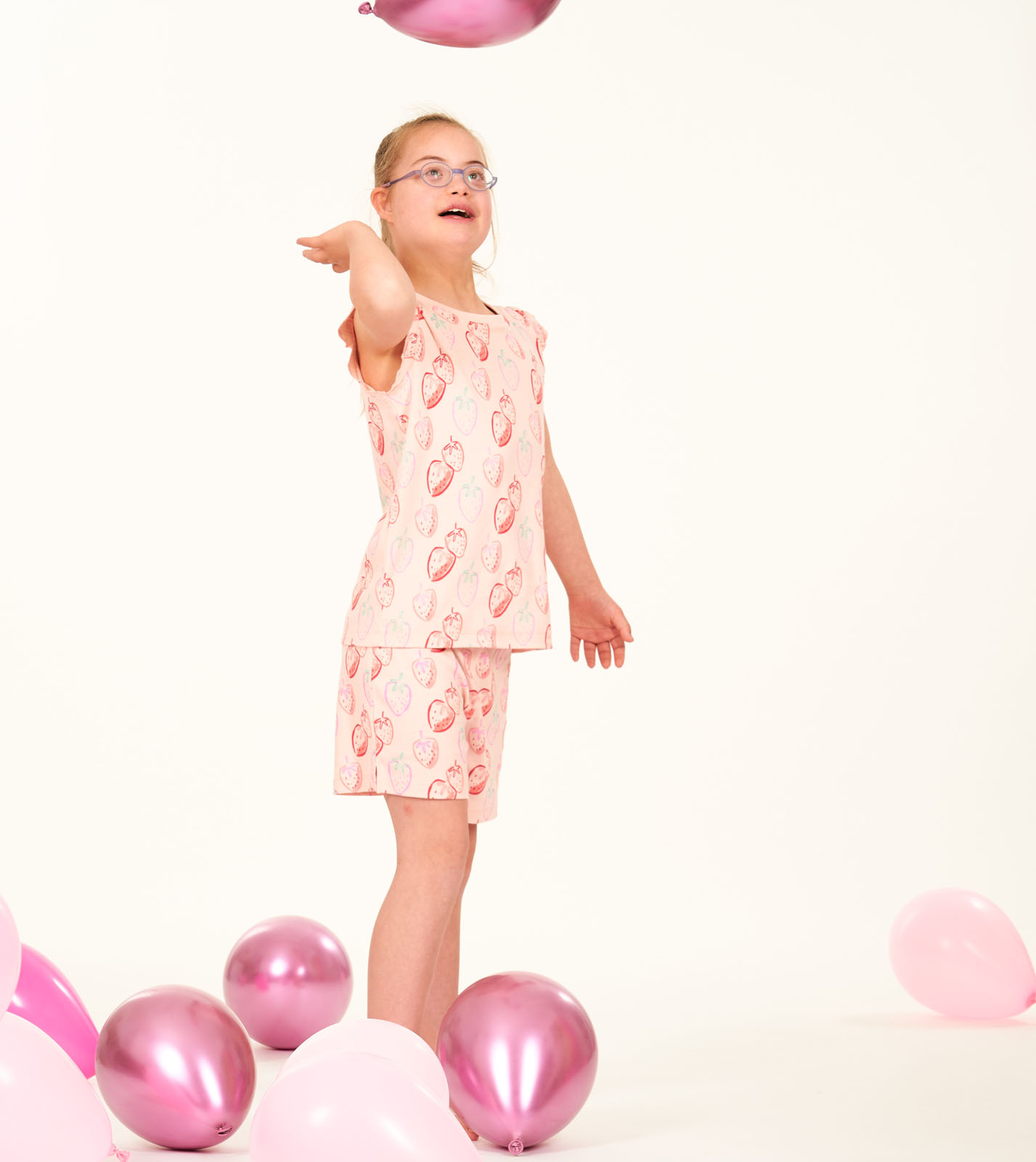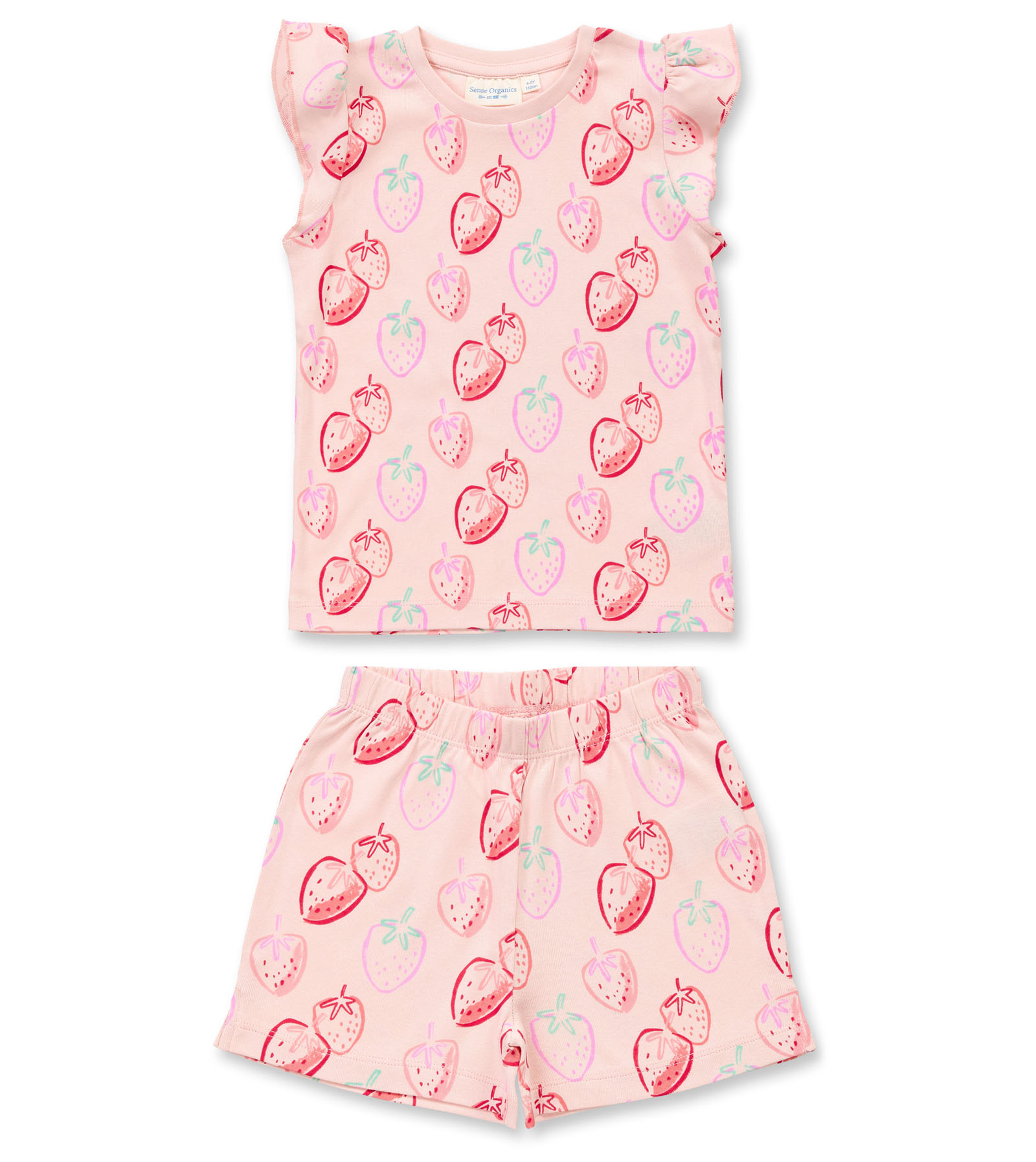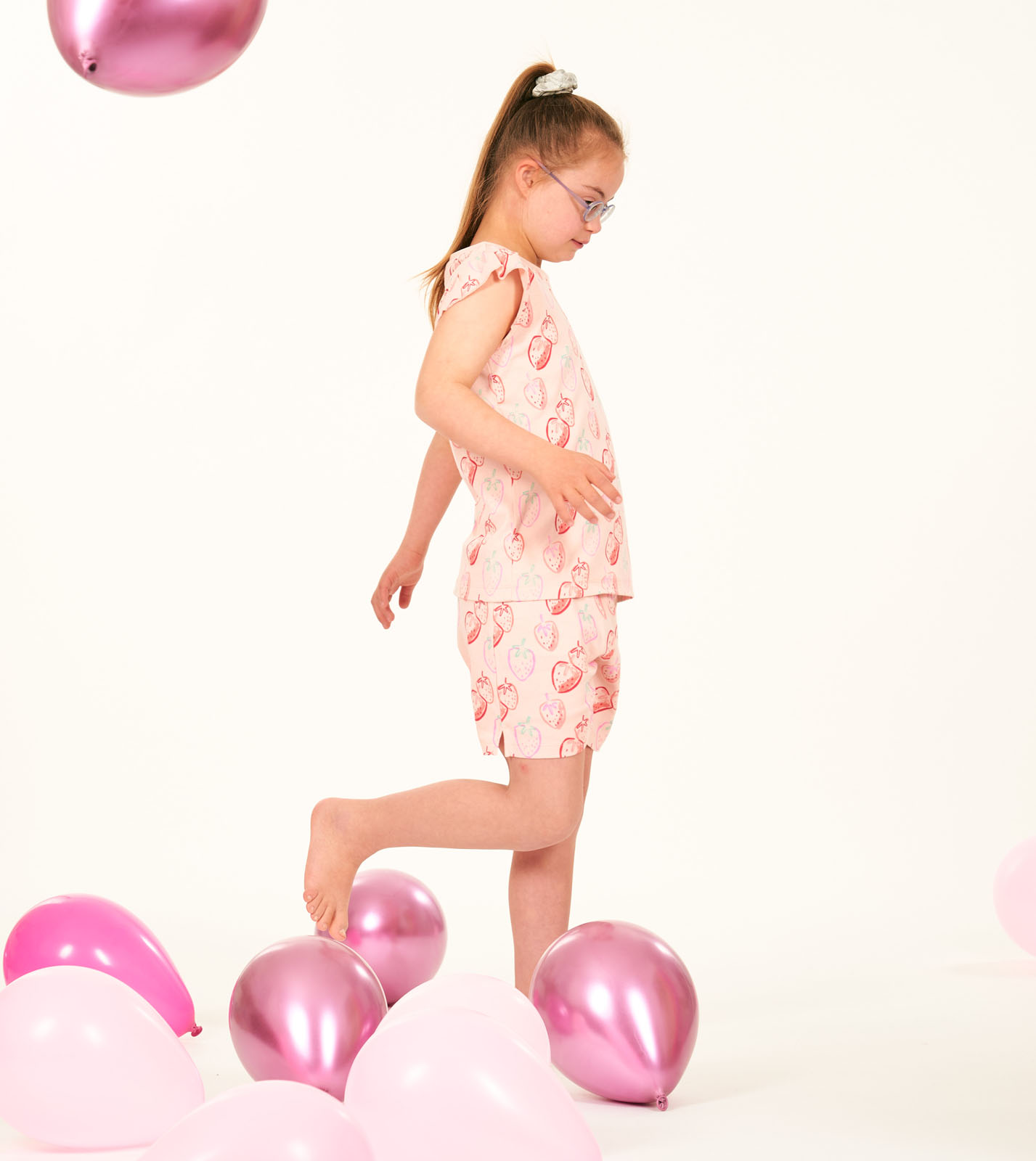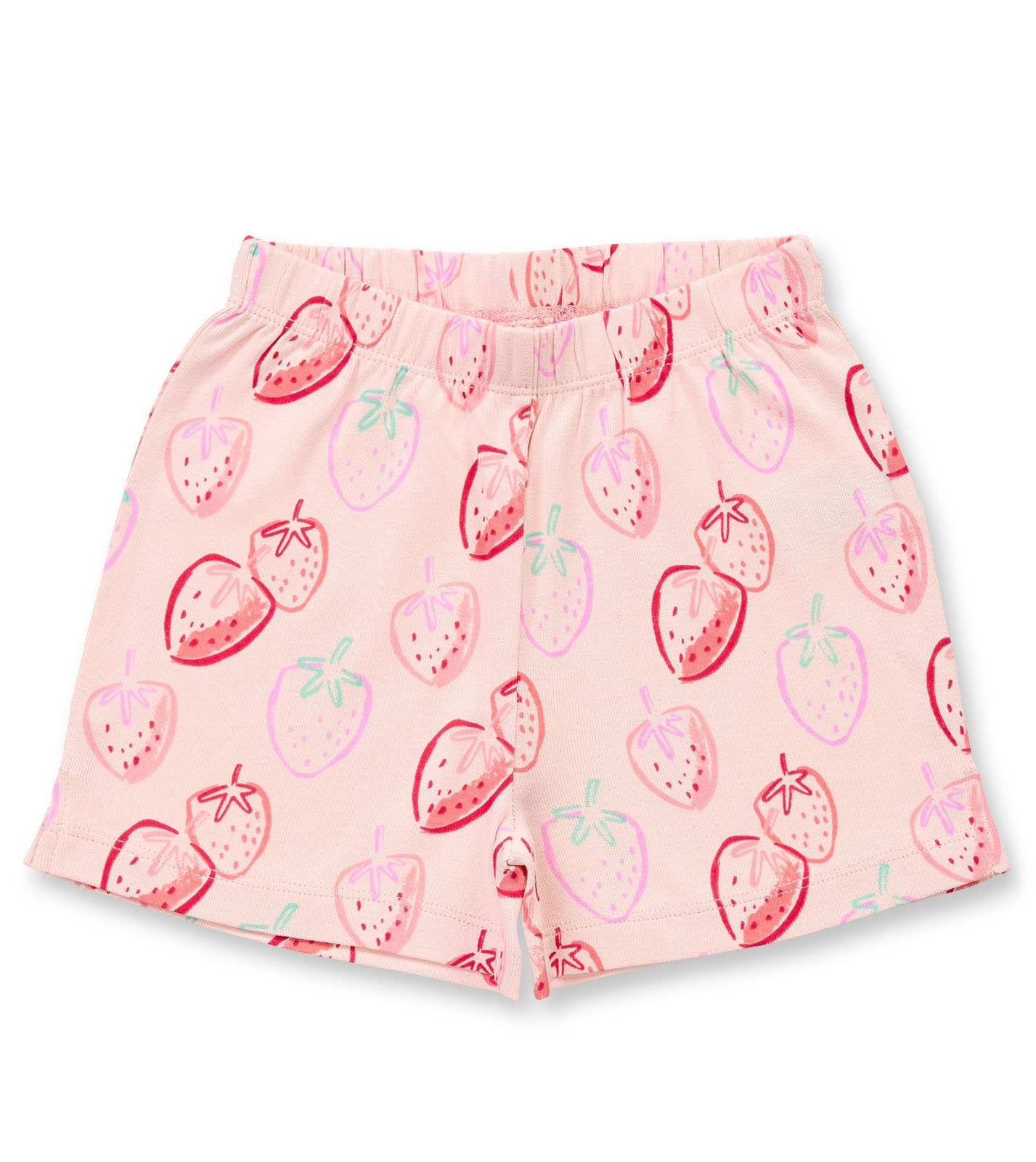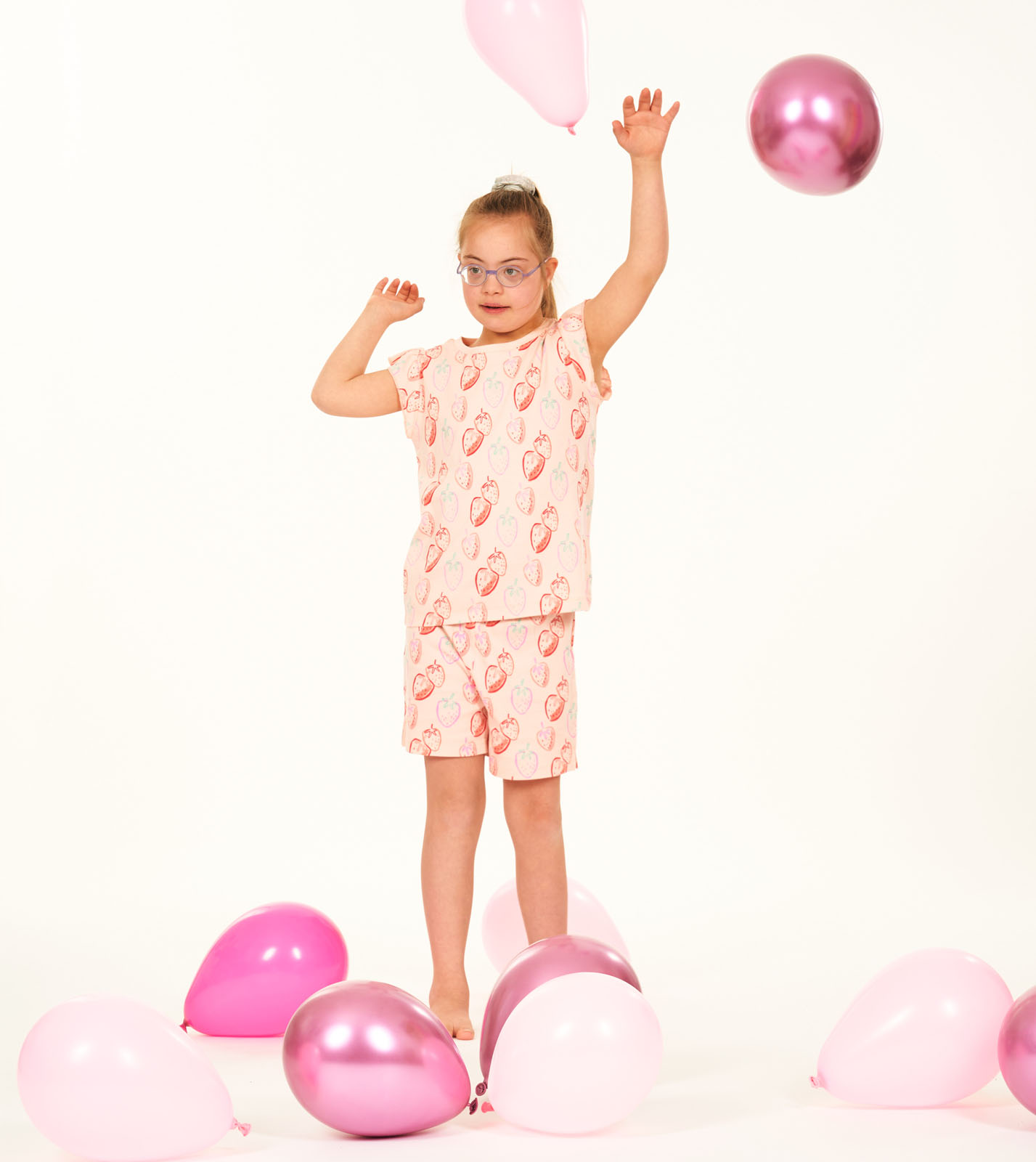 Kurzer Kinderschlafanzug in rosa mit Erdbeerdruck