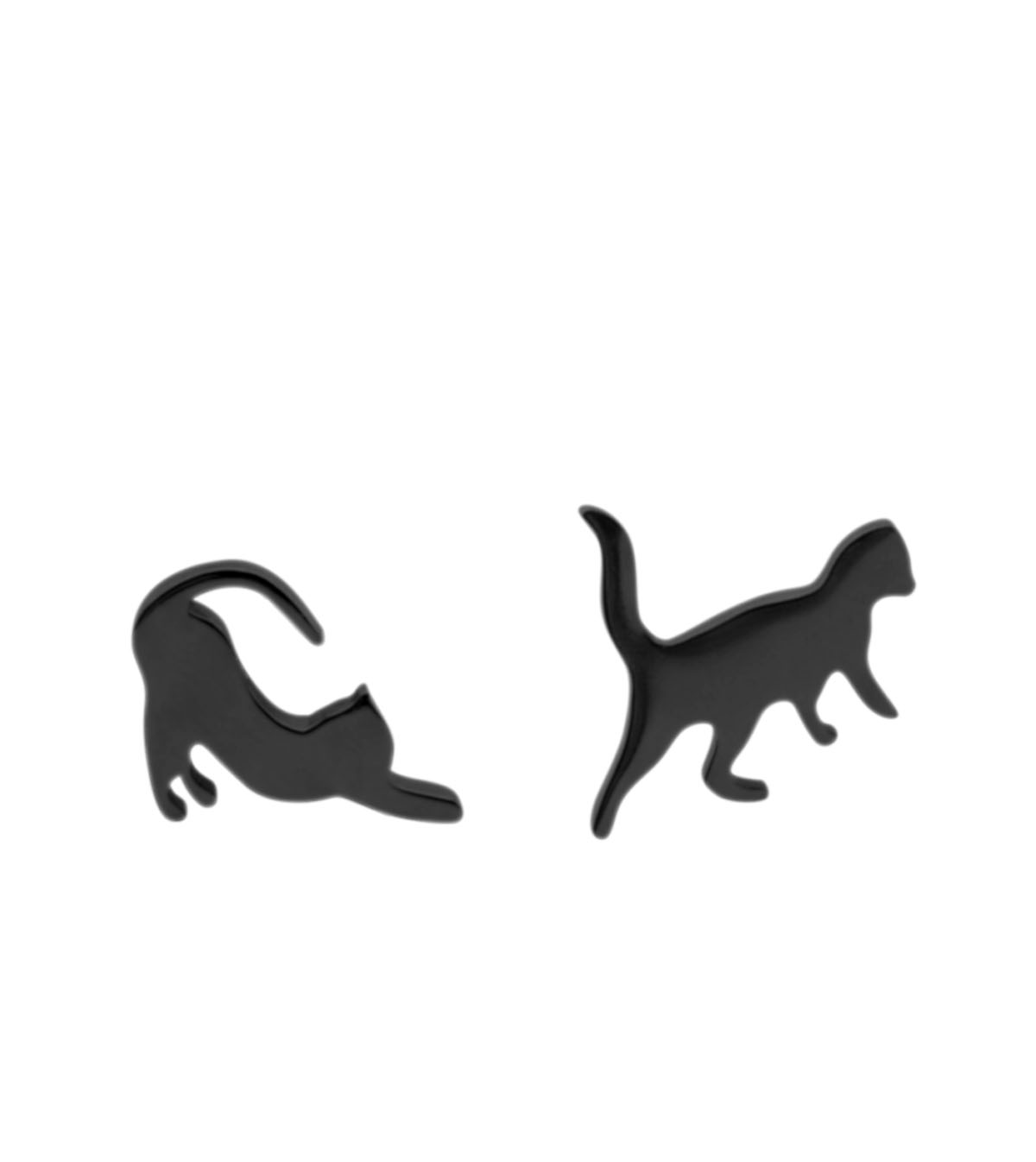 Ohrstecker Katzen streckend & stehend 9 mm schwarz