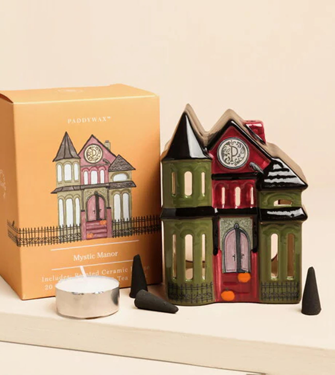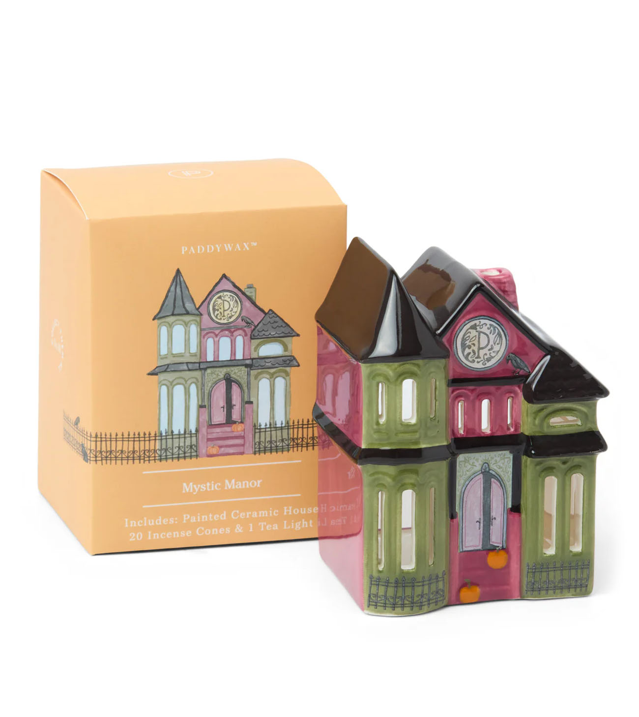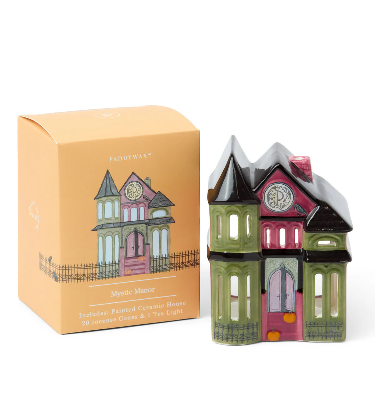 Der Räucherkegel- und Teelichthalter „The Mystic Manor“ von Paddywax ist handbemalt und wird in einer hübschen Schachtel inklusive 20 Räucherkegeln und einem Teelicht geliefert.
