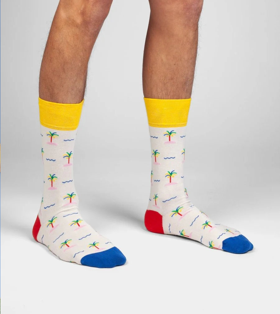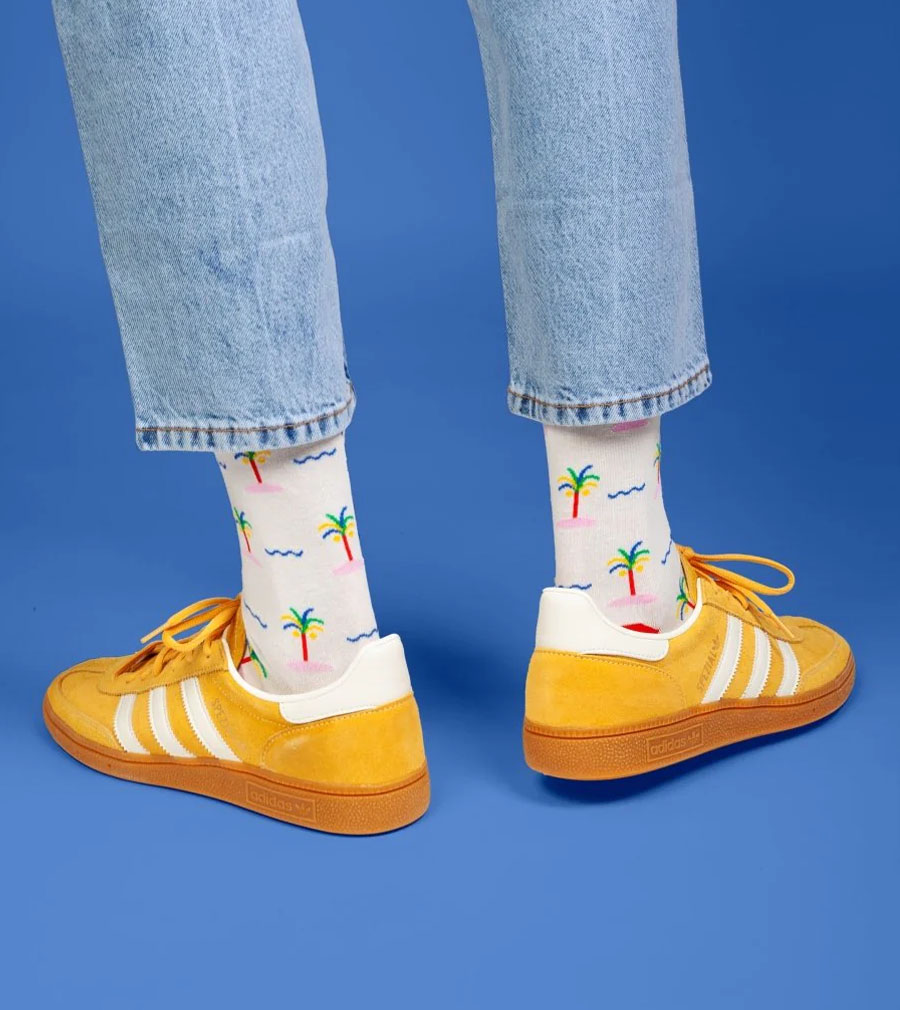 Urlaubsfeeling pur! Hol dir den Strand und die Palmen direkt als stylische Socken.